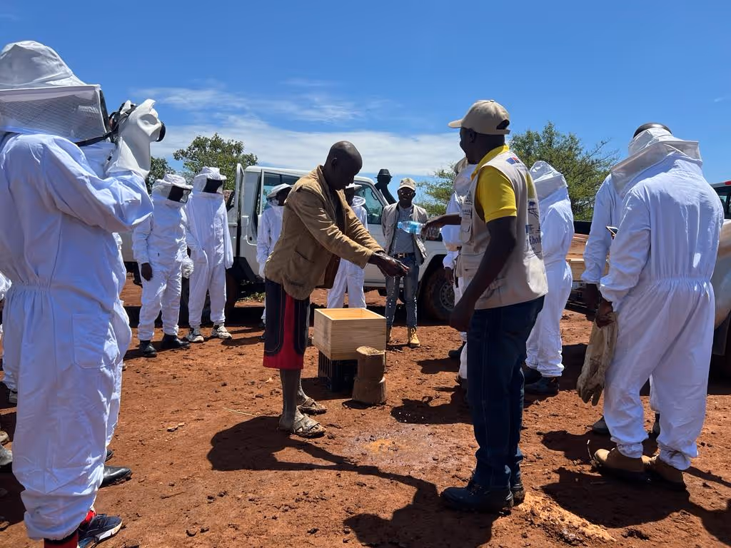 No seguimento do processo formativo realizado, foram entregues kits de apicultura a 15 formandos com um maior índice de crescimento na actividade apícola, de forma a potenciar a sua produção de mel. Dos kits entregues fazem parte colmeias melhoradas modelo langstrot, fato de apicultor(a), luvas de protecção, botas, fumigadores, garfo desoperculador (para retirar a cera dos favos) e balde para colocar os favos.